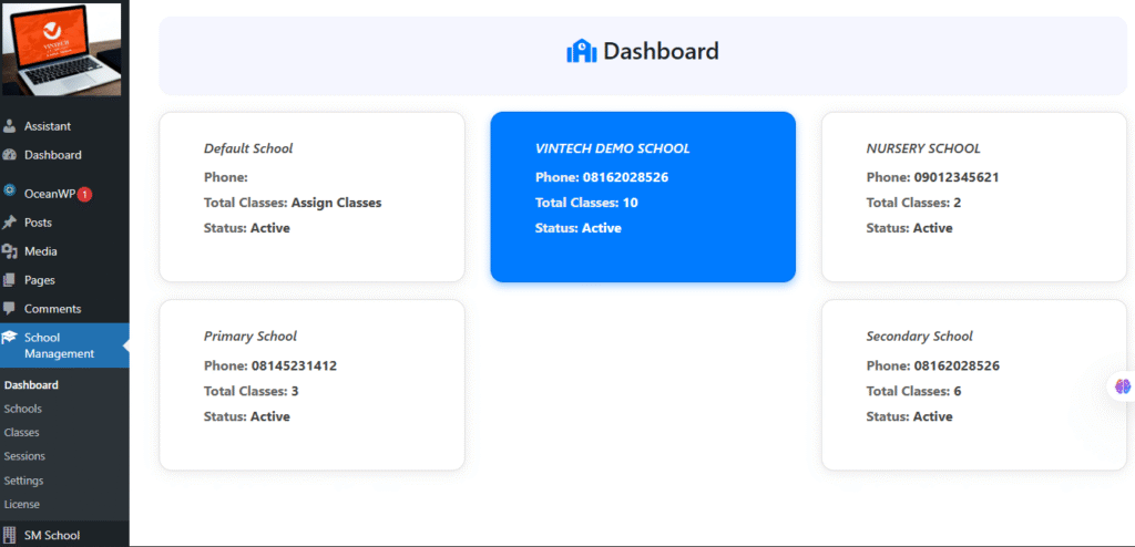This means, you can manage your Nursery, primary and secondary school students, stuff as a school with their own admin and student properly registered and sectioned.