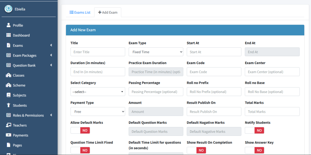 How to add new Exam